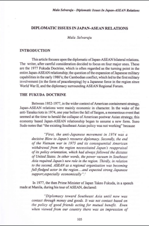• DIPLOMATIC ISSUES IN JAPAN-ASEAN RELATIONS